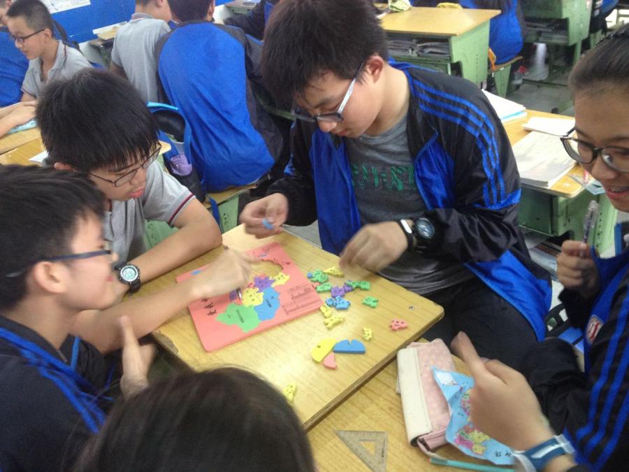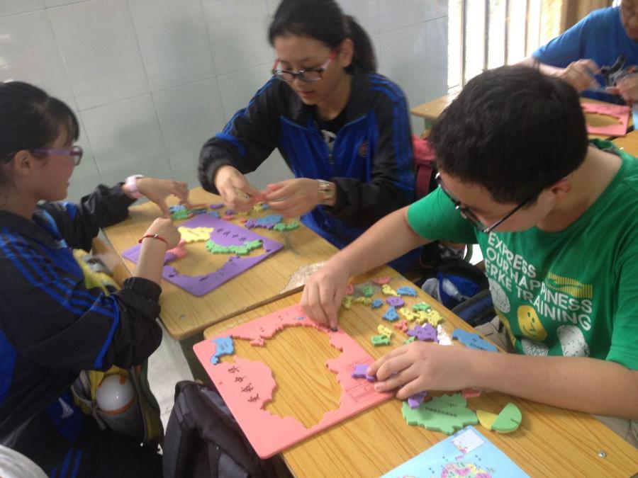 我校八年级学生校内综合实践活动课已进入《中国地图拼图》阶段