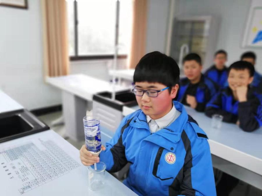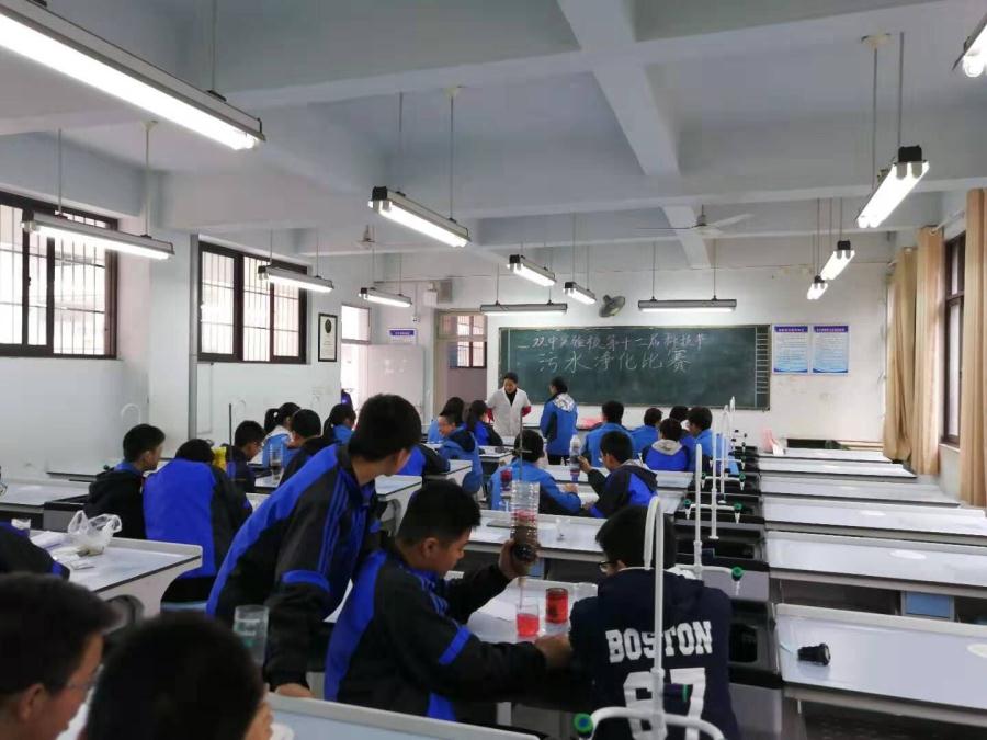由星空在线登录官网化学组承办的本届污水净化比赛在3月15号下午火热进行。同学报名积极,参加本次大赛的同学共计16小组,48人。本次比赛中,同学们做了充分的赛前准备,通过查阅资料和积极思考,大部分同学都选取了活性炭和纱布用来除去可溶和不可溶性杂质,并选取塑料漏斗或矿泉水瓶自制出了净水效果较高的污水净化器。比赛中,学生沉着冷静,胸有成竹,静静的期待净水器的净化效果。