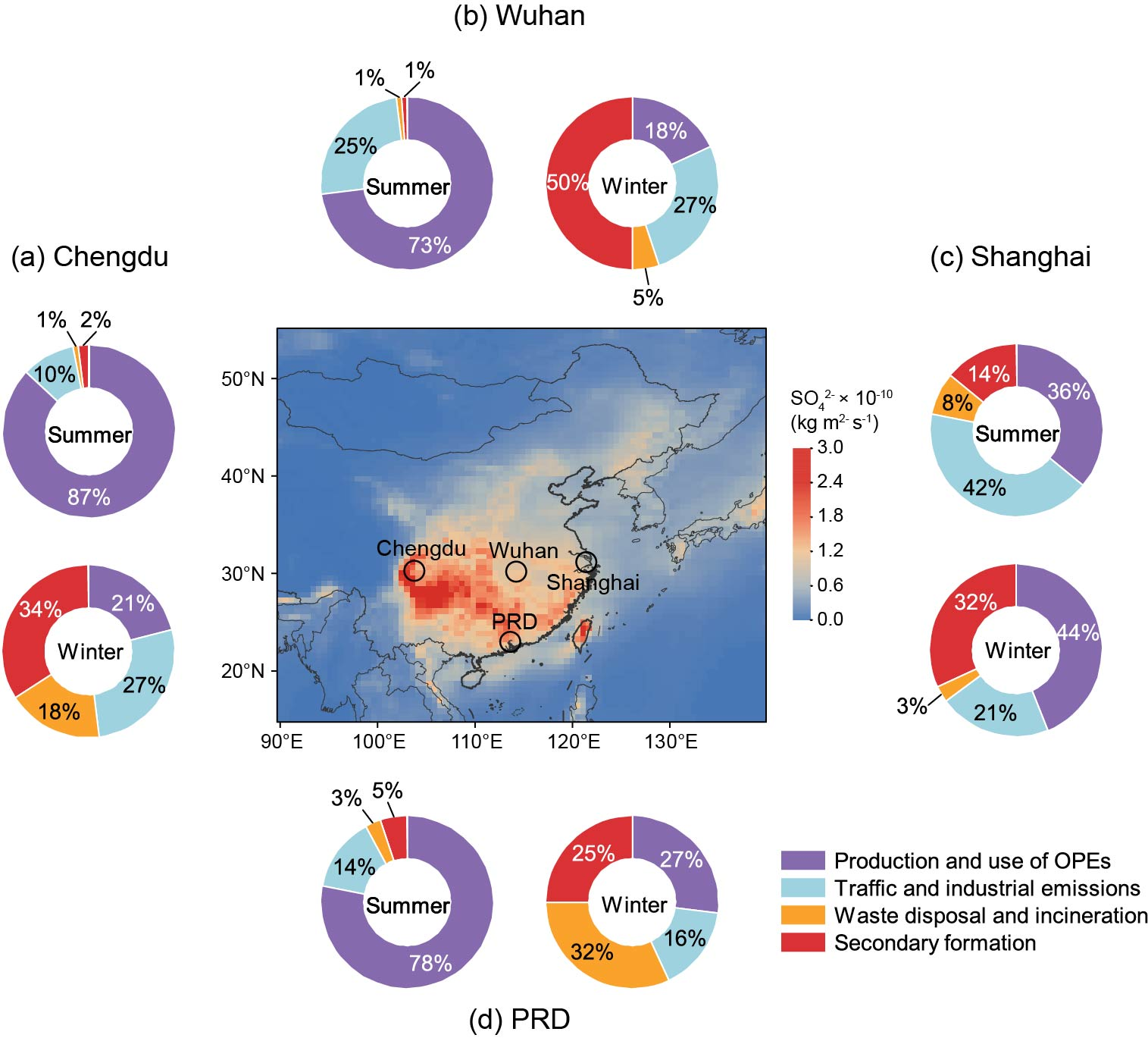 中国典型城市大气中颗粒态“亲水性”有机磷酸酯的来源解析。研究团队供图