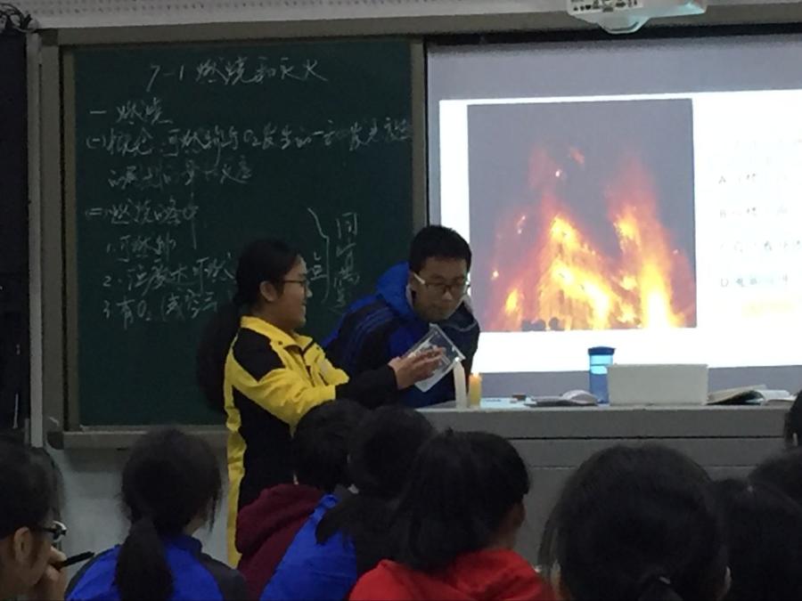 为了研究在化学课堂上如何渗透健全学生人格的教育理念,也为了进一步提高新教师的专业素养和教学能力,夯实教师驾驭课堂教学的基本功。在本周二,代老师展开了一堂生动而实用的人格健全公开课——《燃烧和灭火》。