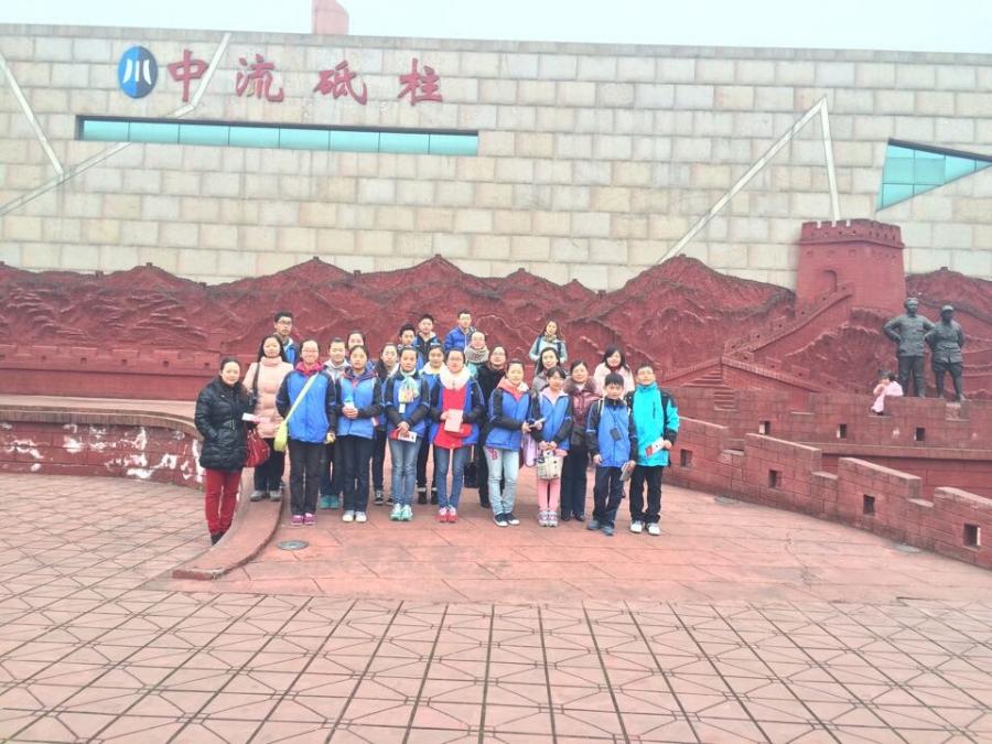 9点30分师生一行到达大邑县安仁镇建川博物馆,前往壮士群雕广场,同学们手持鲜花,庄严地向死难者和英雄致敬。