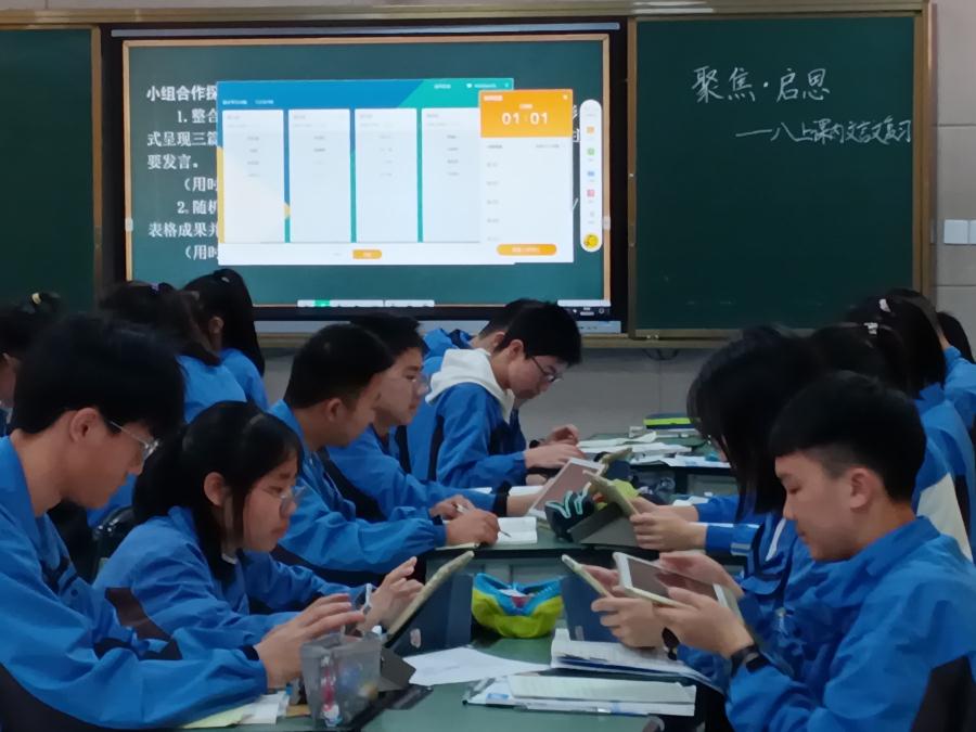 2023年4月3日,信息技术课题组齐聚五楼录课室,开展智慧课堂环境下的复习课模式创新课例研究,由课题组王俊霖老师带来一趟语文复习课《聚焦、启思——八上课内文言文》,校工会主席杨红副校长罗晓章、课程与教学处主任陈国华、教科室主任文传福以及课题组全体教师参与了观摩活动。