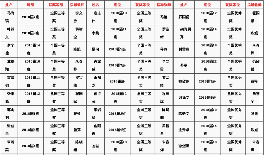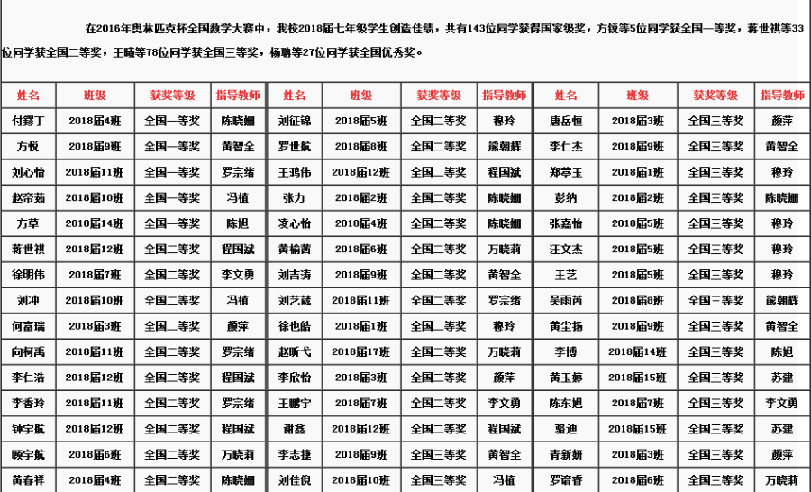 2016年奥林匹克杯全国数学竞赛喜报(初一组)