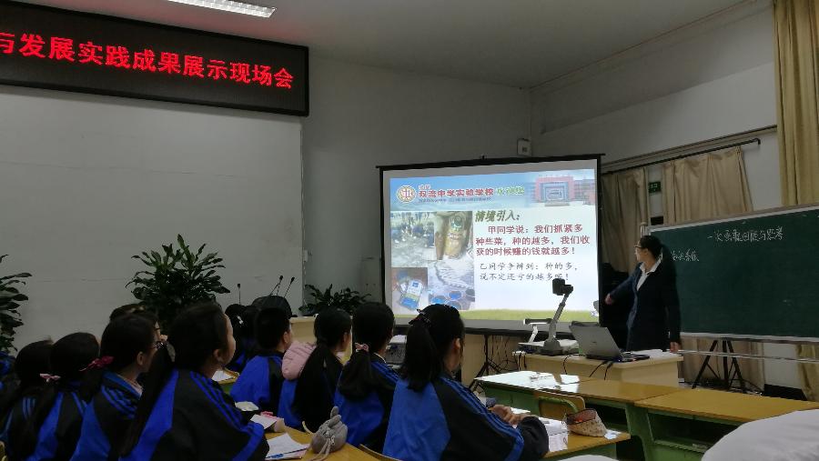 2016年11月7日,全国全国中小学名师工作室优质课堂与发展实践成果展示会初中会场在我校举行,我校数学教师穆玲代表双流区罗宗绪名师工作室献上了一堂精彩的展示课——《一次函数的回顾与思考》。