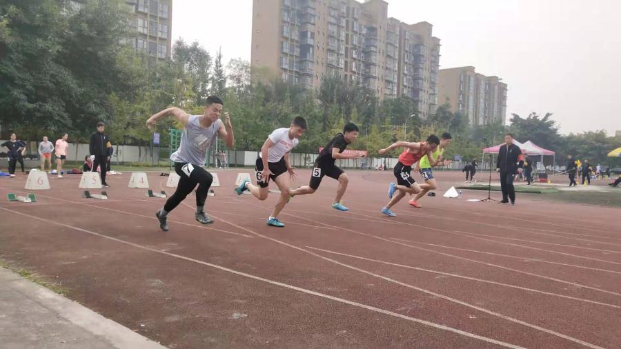 我校田径队韦堡烽在比赛中(5号黑色上衣)