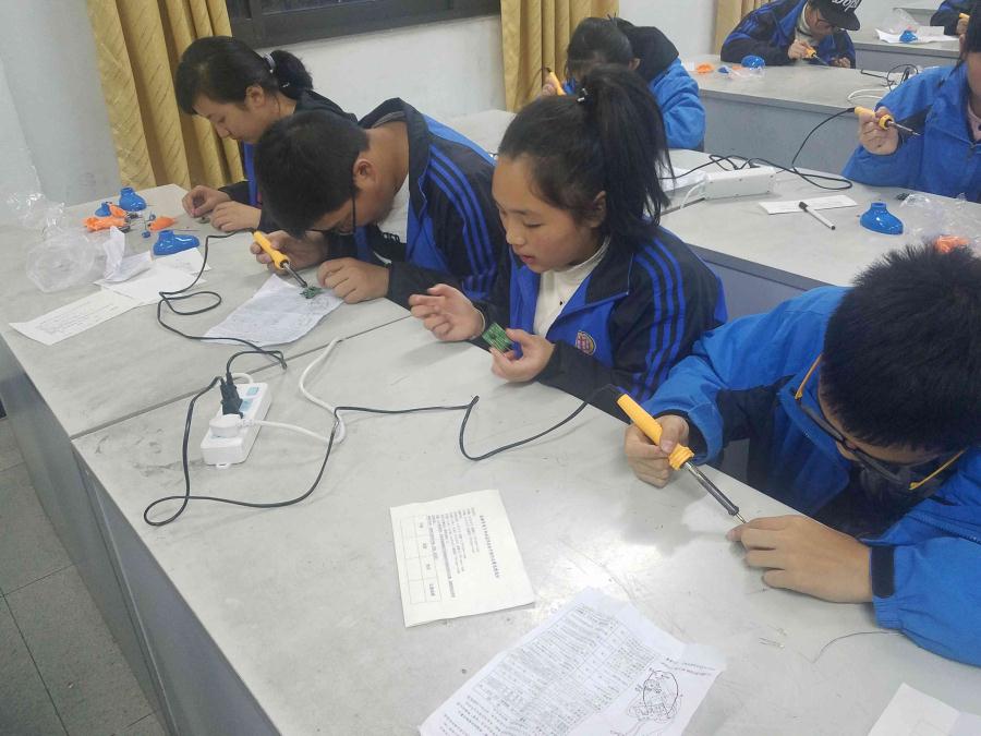 2017年11月30日下午,成都市第三十七届青少年电子作品制作比赛在我校展开。本次比赛的项目是电子作品焊接比赛。瞧,我们的小小发明家们在老师的指导下焊接的多么认真,一个个焊点光滑圆润,堪比专业焊工师傅。