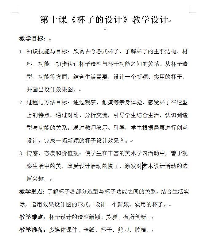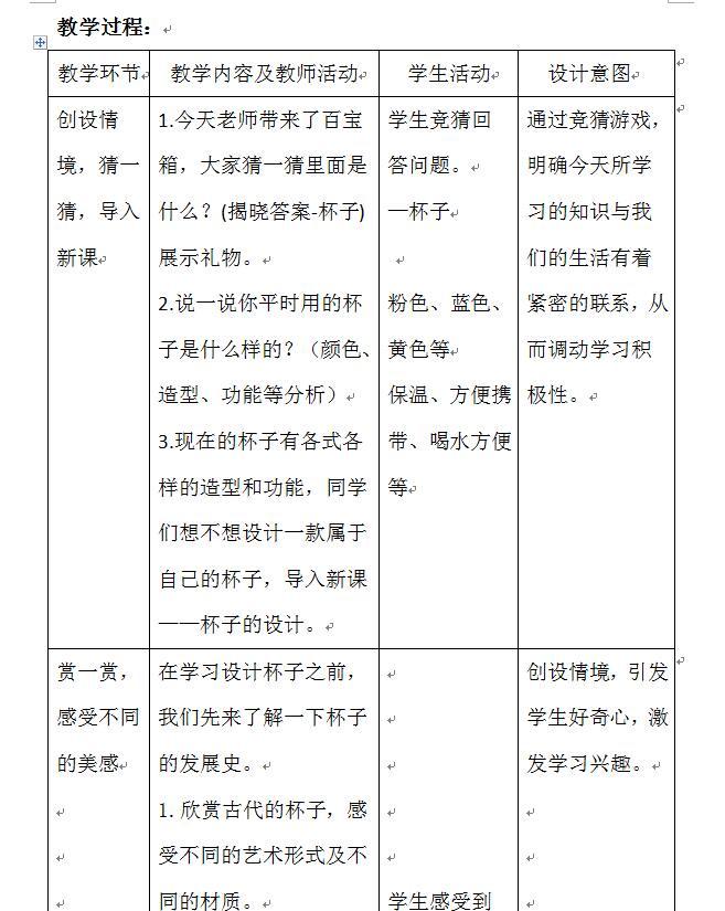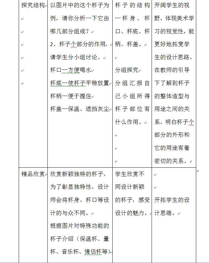《杯子的设计》教学设计