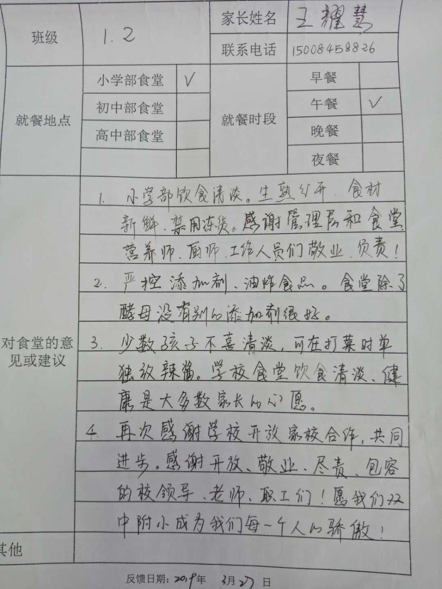 向给我们工作提出意见的家长们表示感谢!