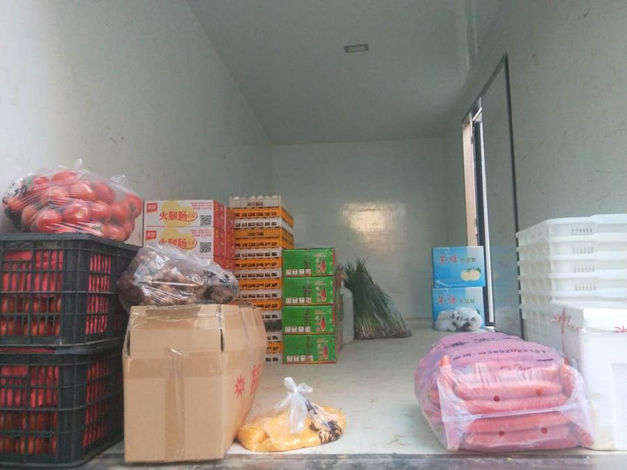 配送人员搬运食材。
