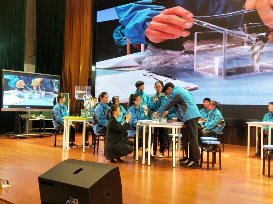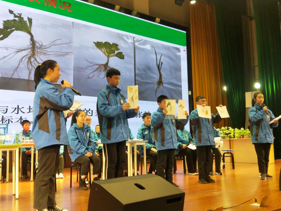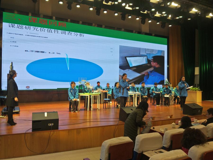 接着方艳秋老师带领探究小组为大家展示了一堂小组研究性学习课题《土培与水培蔬菜种植实验研究》中段指导课。方艳秋老师在教学过程中坚守核心素养的育人目标,实施课程的校本开发。课题汇报从简单的问题调查开始,从真实的生活经验而来。同学们制定方案、设计方案、实验探究、分析实验现象和数据、归纳总结。课题组的学生仔细观察,积极思考,大胆猜想,小心求证,为了解决问题,大家都俨然成了小小科学家。创意物化——自动浇水器,学以致用,凝聚小组智慧。在探究过程中,涵养了同学们科学探究的精神,培养了同学们科学探究的能力,埋下一颗永攀科学高峰,为祖国科技未来添砖加瓦的种子。