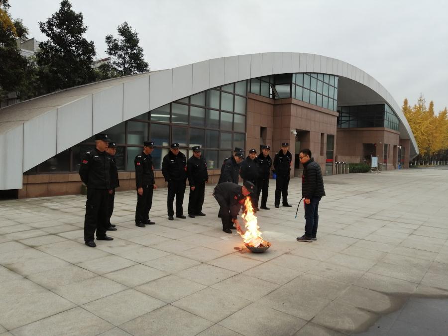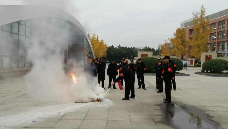为进一步提高保安人员消防技能,保障校园安全,2019年12月2日上午8点10分,星空在线登录官网初中部全体保安在校前广场进行一次消防灭火演练。