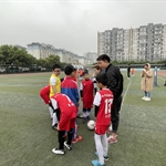 开场我校队员些许紧张,被对方球员紧逼,我们的队长被关的死死的,刚拿到球就三两个球员上来逼抢,根本没法出脚。在这久攻不下焦灼之际,对方球员一脚大脚打门球落在了我方球员头顶并折射进门。场上比赛1:0,我校球员对这突如其来的进来打懵了,随后付老师立即快了暂停。球员们大受打击有三个孩子因为被进球哭了,付老师进行了安慰,让他们调整心态,做好防守的同时加大进攻力度。下半场有几次精彩配合可惜都差一点点,最终在第38分钟的时候,陈子祺在禁区内起脚准备打门,打在了对方球员手上,裁判判罚了点球,点球由崔顥瀚主罚,哨声一响起脚打门,球进了,比分改成1:1。扳平比分后,我们更加注重防守了,最终裁判响哨,全场最终比分1:1。虽然本场比赛打平了,我们还有出线的机会,下一场迎战棠实,打赢我们就出线。