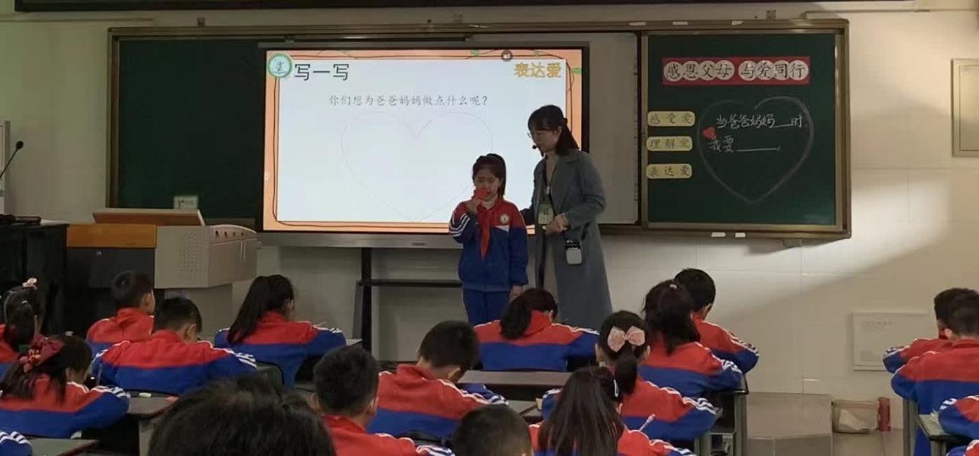 2023年11月13日,为推进“教学评一致性”课题组科研工作,让课题组研究成果能够进一步地在语文课堂中推广和扎根,刘思私老师在多功能厅为孩子们带来了一堂主题为《感恩父母 与爱同行》的口语交际课。