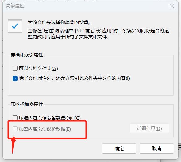 4.选择常规,点高级,选择“加密内容以便保护数据”。