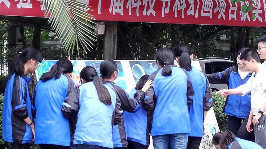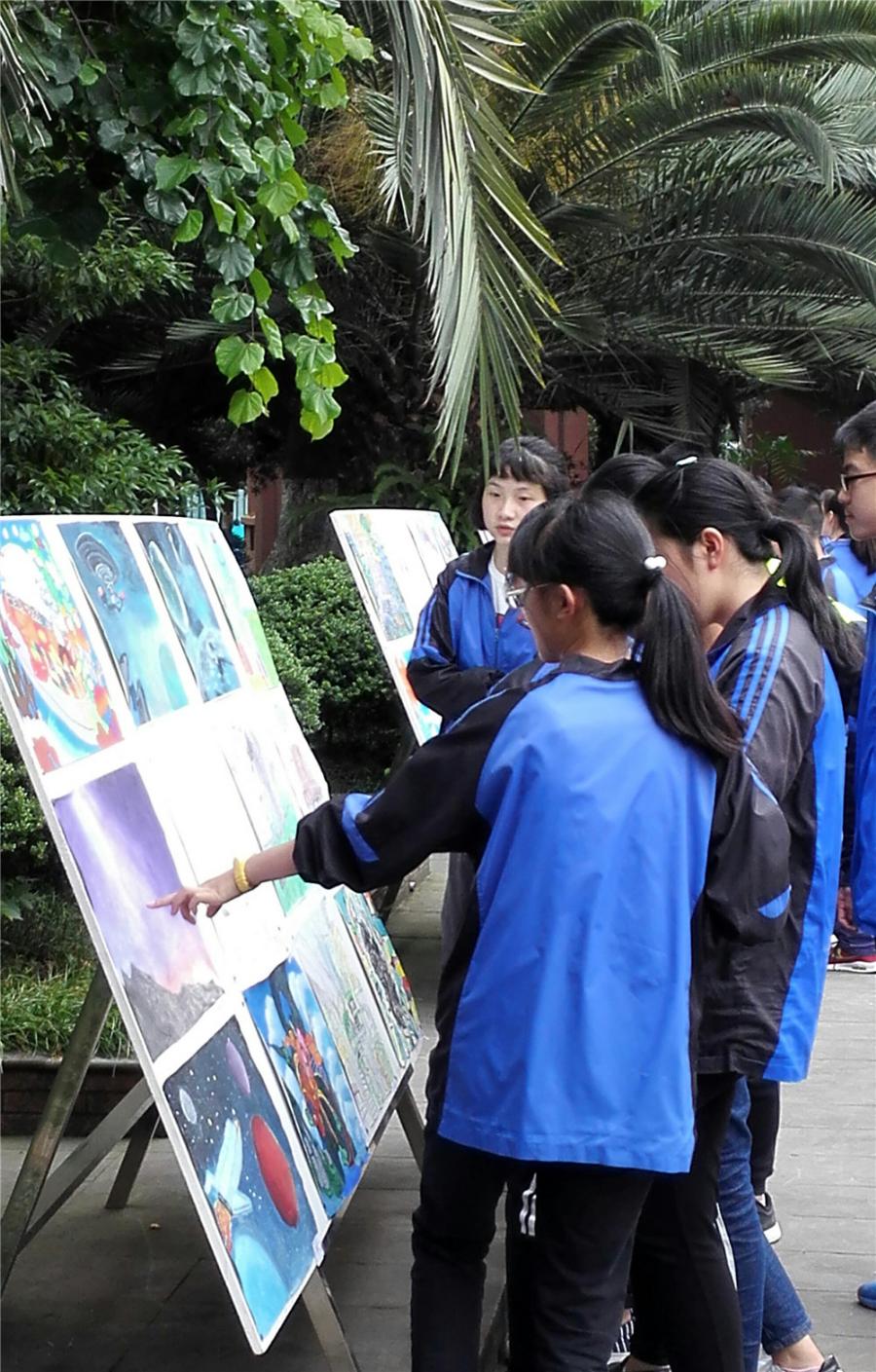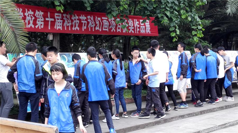 5月18日下午,我校第十届科技节科幻画优秀作品展在英语角展出。本次比赛七八年级学生积极参与,参评作品近200幅,评委组认真评选出30幅获奖作品,本次展出60余幅作品。 科幻画以“科学、幻想”为主题,同学们用五彩的画笔多样化的形式描绘了一幅幅奇思妙想,展现了同学们心中的未来世界。