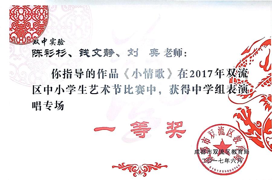 【喜报】我校合唱团在"双流区2017年中小学生艺术节-表演唱比赛"中荣获一等奖!