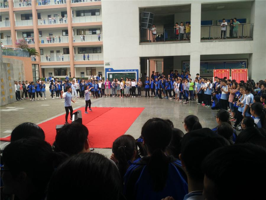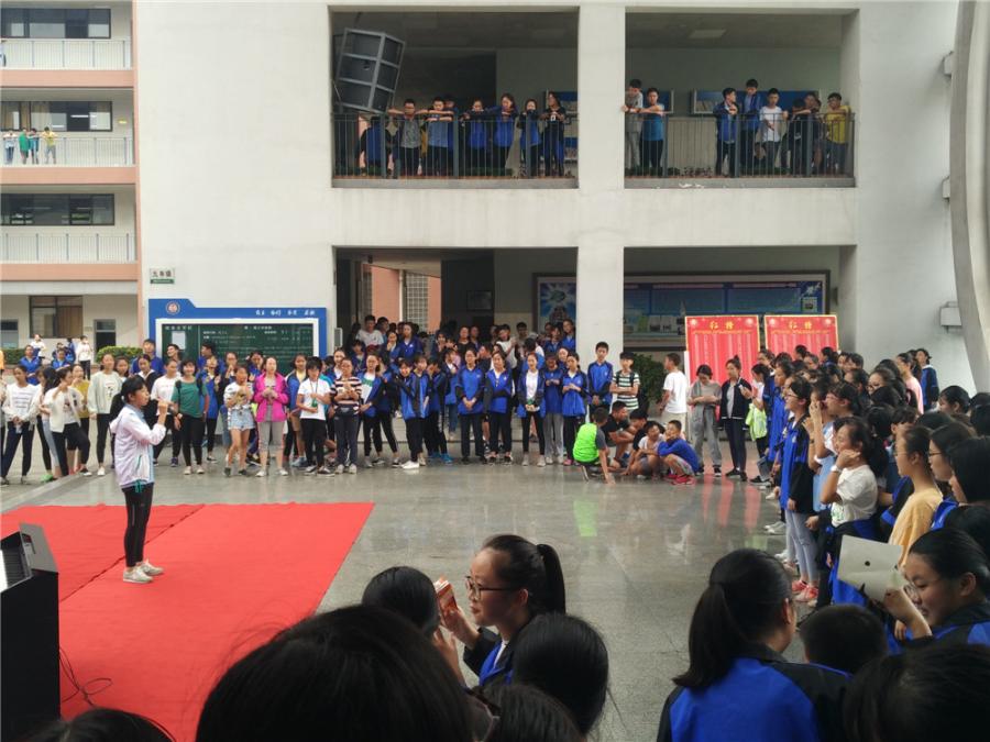 新学期的两次展演活动均由八年级同学担纲:其中,声乐小组的优秀成员表现犹为突出,8年级19班 颜瑞其+王洪艺,8年级20班 格桑梅朵+黄垚尧 这两对“黄金搭档”在经过一年声乐训练后,展示出不容置疑的歌唱实力;西洋乐小组的“钢琴小王子” 8.10班 薛钦珑 声情并茂的演奏引来师生强势围观,交口称赞;民乐小组的竹笛少女吴诗逸演奏了她那“难度系数3.0”的代表作《扬鞭催马运粮忙》;更有孩子们自编的爵士舞加入,观众热情空前高涨……