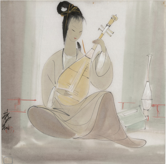 《琵琶仕女》 林风眠 纸本水墨设色 34cm×34cm 20世纪50年代 中华艺术宫(上海美术馆)藏