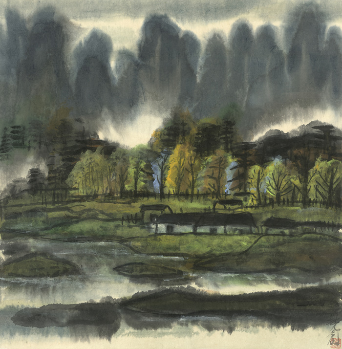 《风景》 林风眠 纸本水墨设色 68cm×68cm 20世纪80年代 中国美术学院美术馆藏