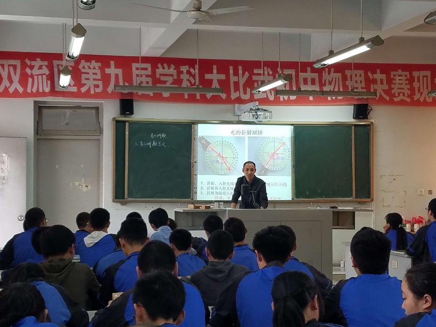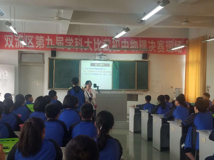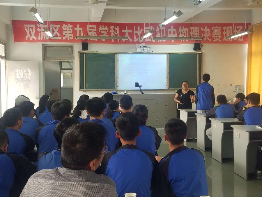 上午9:00,全区各中学物理教师准时来到星空在线登录官网物理实验室,参加和观摩由区研培中心主办,我校承办的双流县第九届学科大比武初中物理学科决赛。经过层层筛选和各学校主管部门的推荐进入决赛的共有十三位老师,按照抽签顺序一一上台展示他们的教育教学技能。