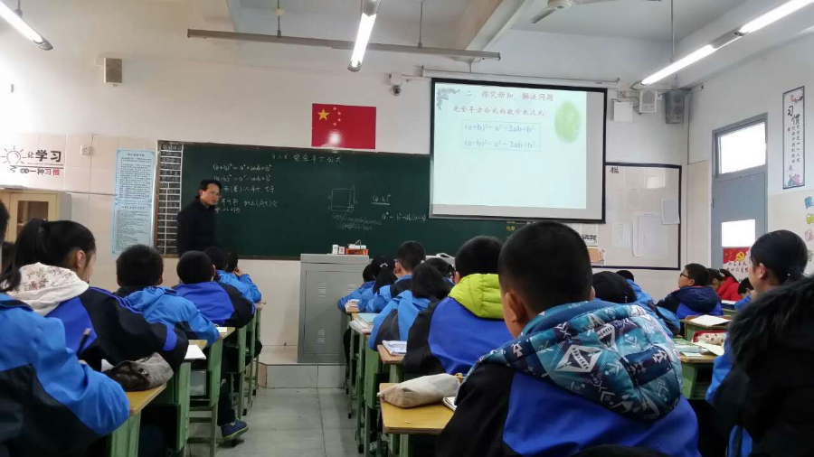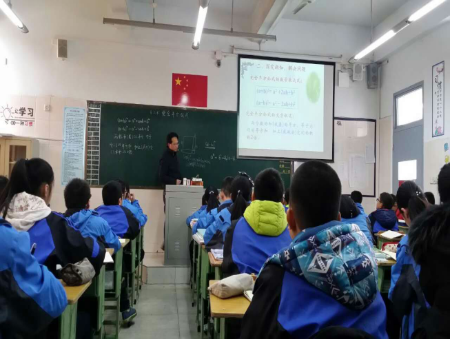 在学校以及七年级数学备课组的精心组织下,邹老师经过充分的准备,给大家展示了一堂精彩的课堂。首先,通过对特例的计算,观察,引入对完全平方公式的探究;然后学生经历观察,发现,猜想,验证的学习过程,邹老师通过典型练习,增加对公式的熟悉度,帮助学生认清公式的结构,数形结合,从不同角度理解完全平方公式。探究结束后,邹老师通过典型例题练习巩固,提升对公式的运用能力,并总结用公式后的符号规律。然后拓展了几道题目,最后,邹老师让学生从知识,方法,体会等方面进行归纳。