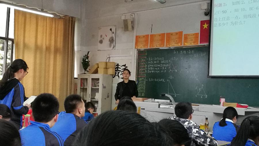2017年4月13日九年级数学组黄艳老师在九年级5班上了一堂以“特殊三角形——直角三角形”为题的复习课。