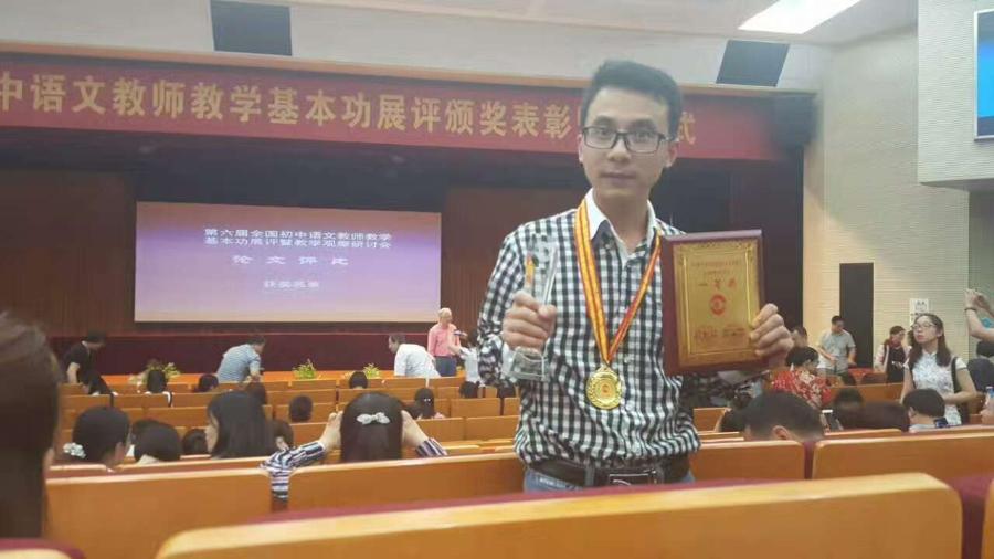 第六届全国初中语文教师教学基本功展评活动于2017年5月14日至19日在“六朝古都”江苏南京举行。我校青年语文教师付兵作为四川省初中语文教师代表参加本次展评活动的现场授课比赛项目,与来自全国28个省、直辖市、自治区的34位精英选手展开角逐。在我校陪同指导教师孙久木和何向的耐心指导和精心打磨基础上,付兵老师稳定发挥,力克群雄,以优异的成绩夺得大赛一等奖。
