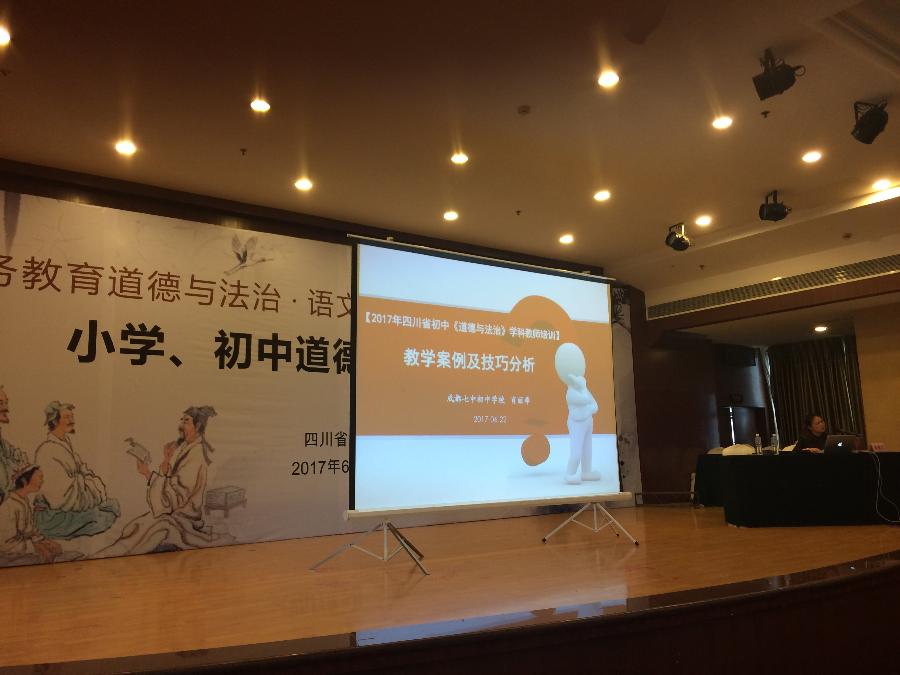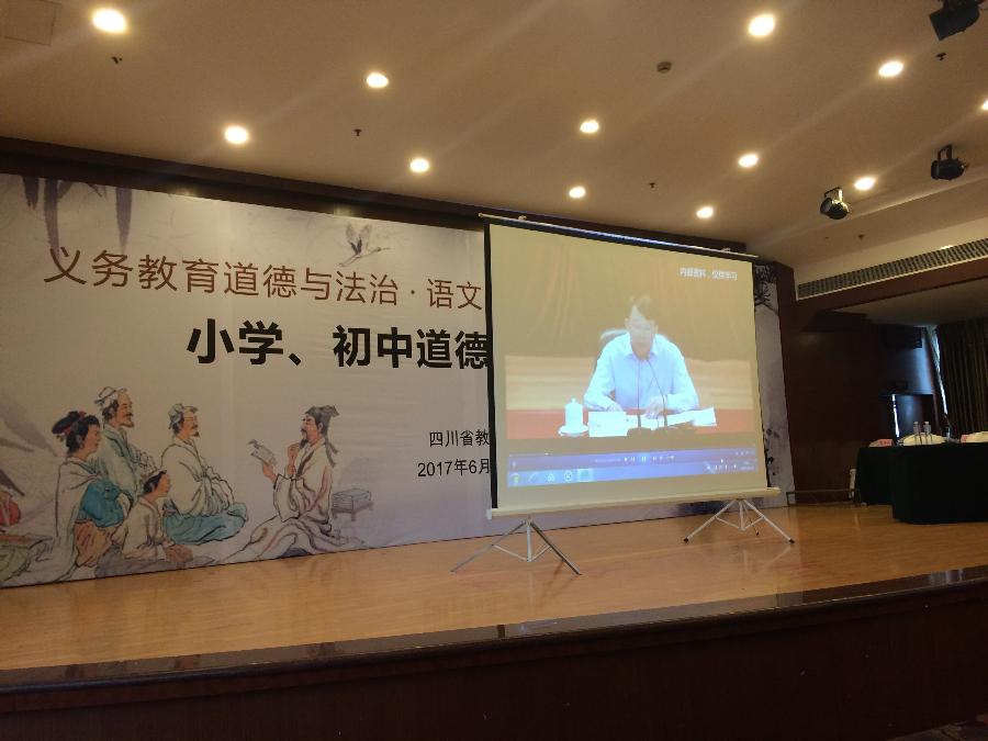 本次培训由四川省教科所组织,邀请到了人民出版社副总编辑朱明光老师,教材七年级上册编写者吴蓉老师和张学军老师、省教研员李淑英老师为到会老师做培训。台下就坐的四川省各市州、各区县的教研员及骨干教师。