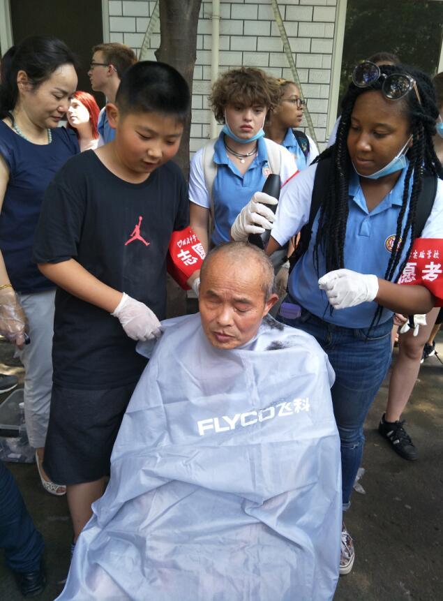 7月19日下午在AFS项目老师及学校社区服务课题组老师的组织安排下,美国来华青年学生参加了我校的“爱心敬老”社区服务活动。
