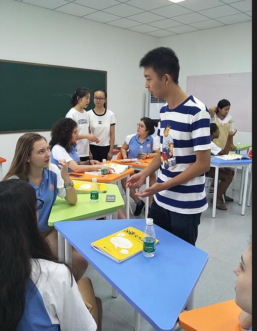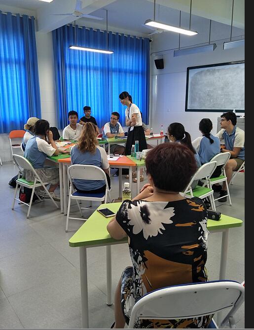 7月25日上午,中国教育国际交流协会中外师生交流项目办公室主任李阳一行四人专程从北京飞来我校,对AFS美国NSLI-Y项目进行中期考察及指导。我校项目负责人,外事办杨红主任将我们前四周的汉语课程、各项文化体验课、综合实践活动课的实施情况一一作了介绍。英语组教研组长李征老师就项目的日常管理,与学生及接待家庭家长的日常交流情况向李主任做了汇报。李阳主任从我们提供的图片、文字、视频等资料里,非常直观地看到了我们在这期间的教学活动、各项实践活动的场景。她对我们的课程设置、日常管理工作的细致落实给予了高度评价,尤其对我们每天详尽的“项目工作日志”这一记载方式给予了充分地肯定。对于我们开设的各项极富特色的文化体验课(茶艺、太极、民族歌曲、水墨画等),社区服务活动(美国学生去双流图书馆做英语教学志愿者;在双流敬老院为老人们理发、敬茶、打扫卫生、表演节目、赠送礼物等)李主任也表现出了浓厚的兴趣。李阳主任说:“你们是近几年承担此项目的学校中,日常管理最细致最有新意,上课老师素质最高的!这个项目交给你们学校,我们非常放心、非常满意!”
