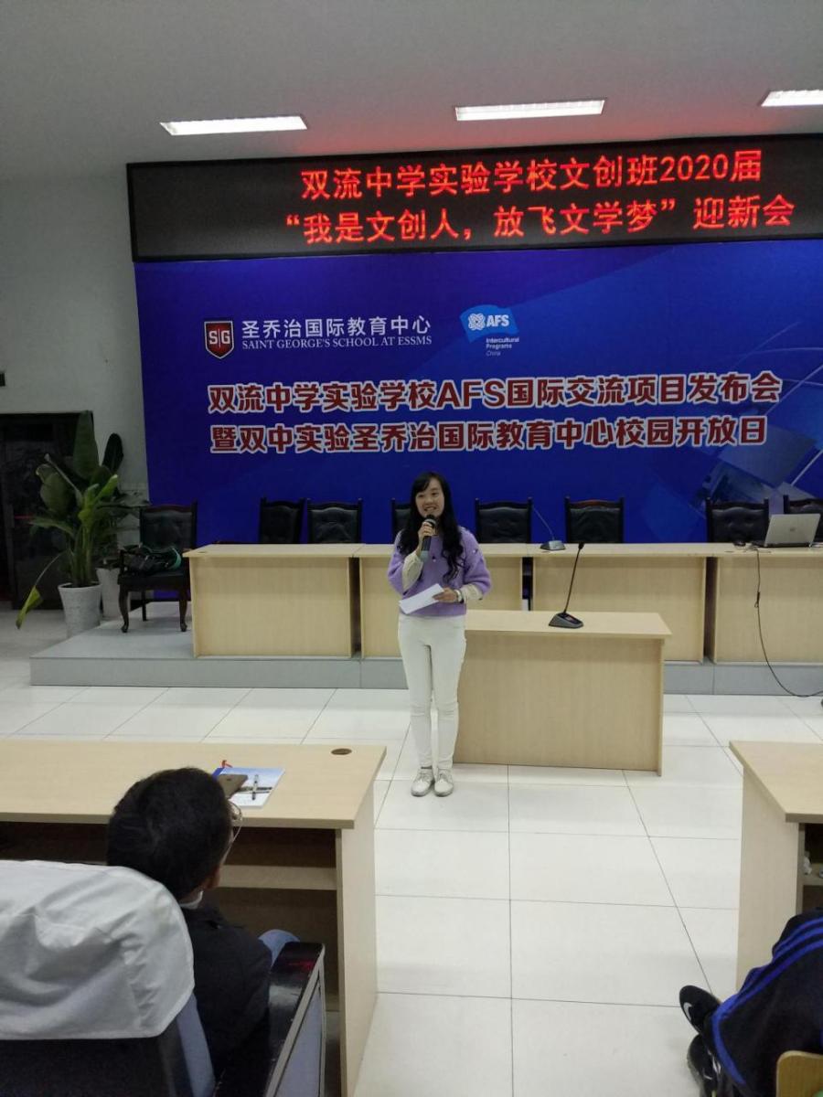 会议开始,文创班备课组组长谢娟老师就文创班的基本情况作了介绍。她为大家介绍了为什么要开设文创班、文创班的培养目标、文创班的课程设置、文创班创造的中考奇迹及文创班优秀的师资力量。