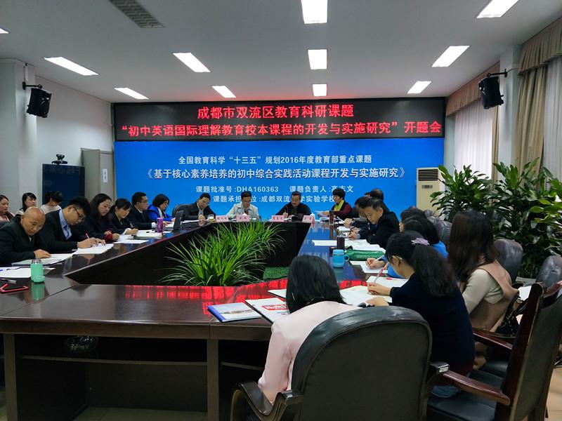 2017年10月17日, 由我校承担的成都市双流区教育科研课题 “初中英语国际理解教育校本课程的开发与实施研究” 在学校三会议室举行开题会。
