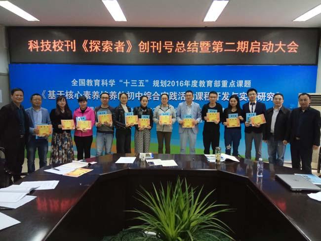 2017年10月19日,在学校三会议室召开了科技校刊《探索者》创刊号总结暨第二期启动会,罗主任和张校长亲临指导。首先由主编段绪德老师用“地位高、时间长、困难多、人心齐、见成效”这几个关键词对首期《探索者》进行了小结,并对《探索者》发放规则、成果认定进行了说明,也提出了愿景规划。其次,段老师对二期《探索者》进行了工作安排,也对各栏目给出了建议。接着,罗主任对封面的排版设计提出了中肯的意见,也建议在内容中设置二维码,提高《探索者》的可视性。他强调一定要把好质量关,栏目设置可继续探讨并整合,审稿和投稿一定要到位。最后,张校长提出《探索者》要起到课程引领作用,通过发放方式多样化来提高期刊的影响力,还应增加学生作品,探索整合的可能性。