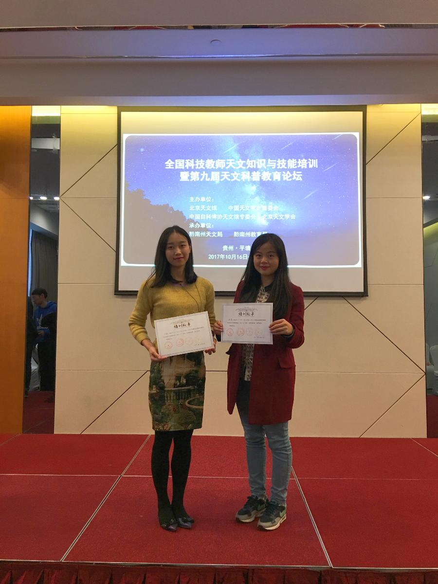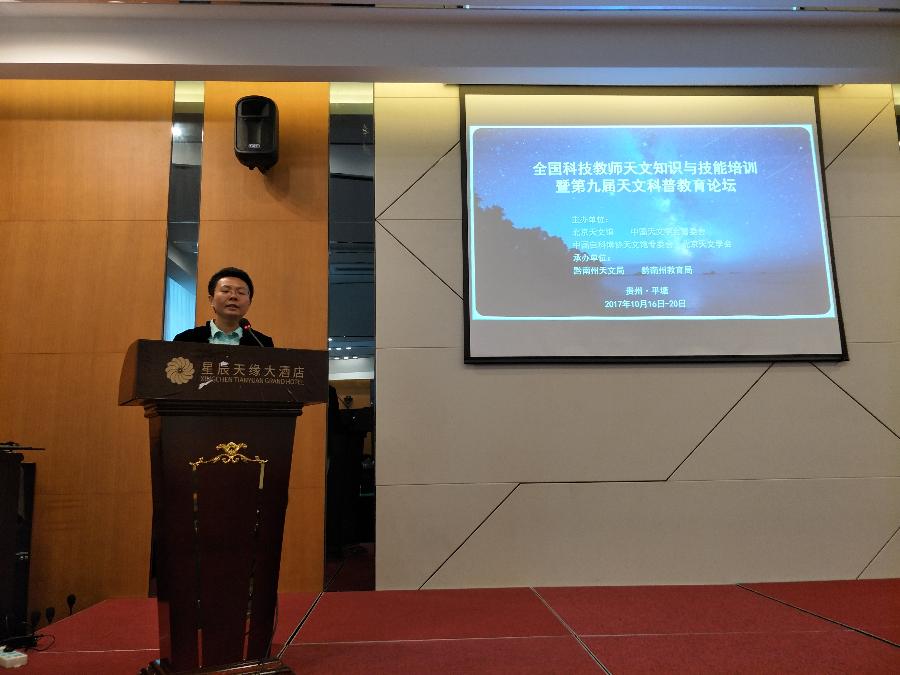 10月16日,由北京天文馆、中国天文学会普及工作委员会、中国自然科学博物馆协会天文馆专业委员会和北京天文学会联合主办,黔南州天文局和黔南州教育局承办的全国科技教师天文知识与技能培训班在贵州平塘县天文小镇开班。来自全国各省市天文老师及科普工作者、黔南州各县(市)大中小学教师近百人参加培训。我校地理组教师刘英、丁翔作为我校代表教师参加了此次培训。