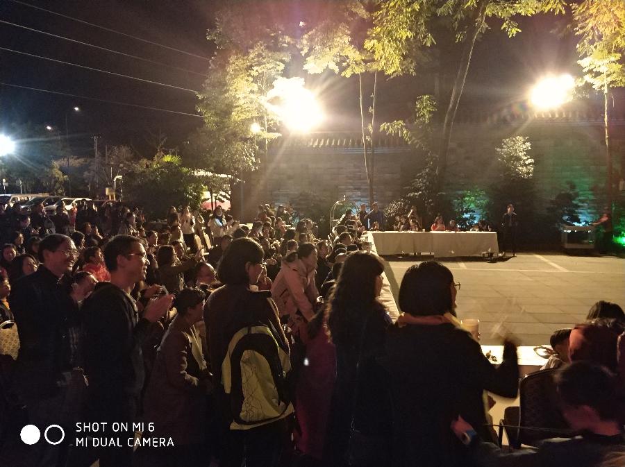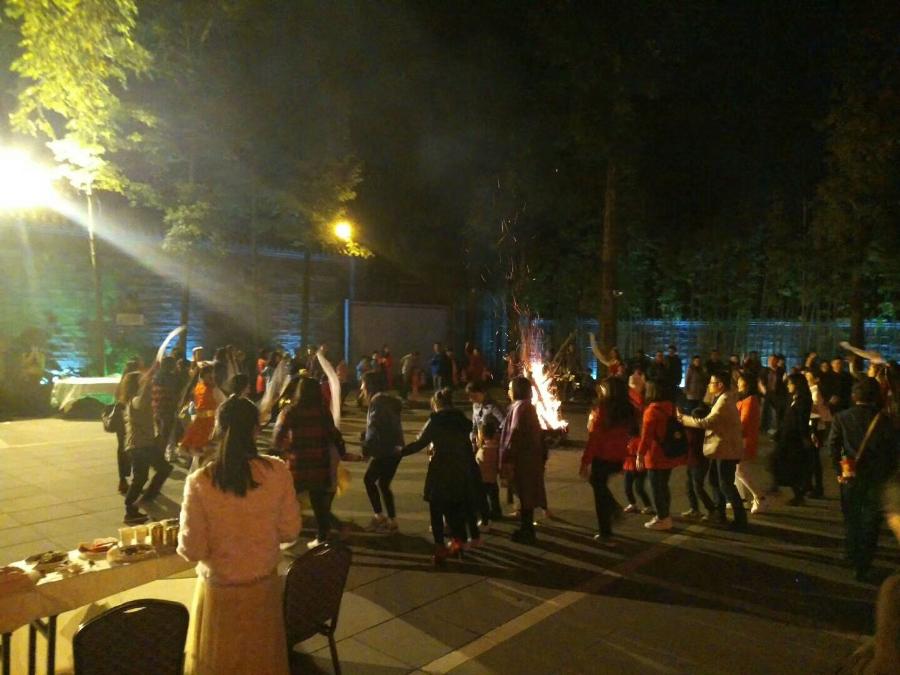 11月10日夜,青城山下,隐秀尚庭,苍茫夜色中,熊熊篝火旁,不时传出阵阵欢呼声、呐喊声、尖叫声,以及宛如天籁般的歌声……星空在线登录官网在此举行一年一度的工会外出活动。与往年不同的是,今年学校艺术组还精心策划了一场职工歌手大赛,男女老幼,两百多号人,一起聚在篝火旁,一边吃着烤羊肉、喝着小酒,抢着红包,一边欣赏“明星”风采。二十三位歌手,风格各异,国语歌、英文歌,男中音、女高音,有婉转悠扬的,有高亢激越的,有自弹自唱的……人们尽情欢呼、尽情歌唱,一起度过了开心难忘的夜晚!