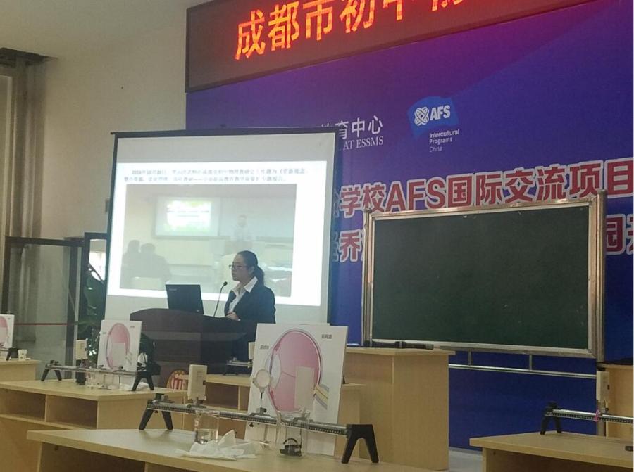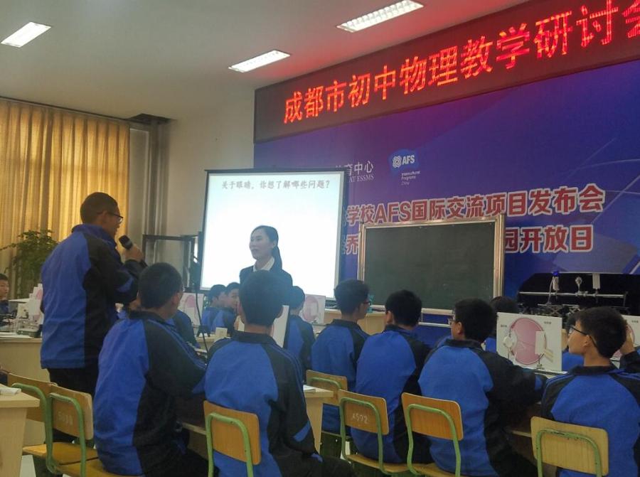 11月9日,2017年成都市初中物理教学研讨会在我校举行。会上,我校物理组王春艳老师为来自全成都市的专家和老师献出了一堂精彩的展示课《神奇的眼睛》。王老师充分利用我校主研的市级课题《自主合作探究式课堂教学模式构建研究》的研究成果“初中物理规律课自主合作探究式教学模式”进行课堂教学设计,并结合我校综合实践特色,从创设情境激发兴趣、诱发思维分析问题、实验探究师生共鸣、归纳总结达成共识等几个环节开展教学。首先,王老师展示了学生课前在医院、学校、幼儿园收集的关于近视眼和远视眼的调查,激发了学生对眼睛的研究热情。接着,围绕正常人眼睛如何看清物体,近视眼和远视眼如何形成以及如何矫正这三个问题,王老师引导学生开展了丰富的探究活动。整个教学过程环环相扣、层层推进,以学生为主体,让学生充分参与整个教学过程,有效体验整个学习过程,较好的体现了自主、合作、探究的理念,为全体与会老师和专家充分展示了我校教师在课模研究和综合实践活动课程方面的成果。课后,我组罗远均老师还为与会老师作了《有效整合课程资源 促进学生个性发展》的专题报告,各位与会老师均表示受益匪浅。