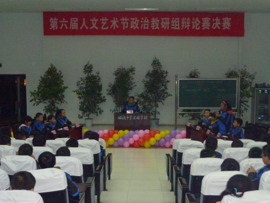 本次辩论赛属于我校第六届人文艺术节系列活动子项目之一,主要由我校思想政治教研组负责组织和承办。我组从10月份就开始筹划和准备,前后经历了宣传、报名、培训、初赛、初选、再培训和决赛共七个阶段,耗时近三个月时间。