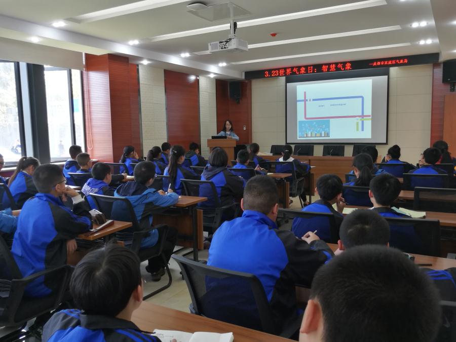 2018年是第58个世界气象日。今年世界气象日主题为“智慧气象”(英文:weather-ready, climate smart)。我校“风云气象站”为进一步拓展学生的气象科普知识,向敏老师和姚萌老师组织校园气象站的成员和“探索气象奥秘”“物候观测”选修课的同学走进双流气象台,参观学习“智慧气象”的科普知识。