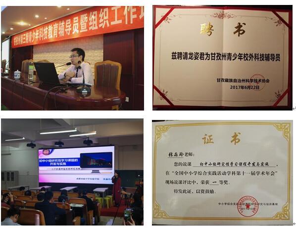 在该研究活动中,指导老师也收获颇丰。2017年6月,龙姿君老师作为四川省青少年活动中心“专家库成员”承担《科技实践活动的开发与实施——以羊肚菌种植研究为例》专题讲座,并被聘为甘孜州青少年校外科技辅导员。张淼玲老师被推荐参加在河南郑州举行的第十一届全国综合实践活动学术年会说课比赛,荣获全国一等奖。因活动开展所产生的良好效果广泛传播,广东省第六期教育科研规划小课题研究(成都)学习活动慕名来到我校,聆听龙姿君、张淼玲老师的《羊肚菌种植实践研究》专题讲座。