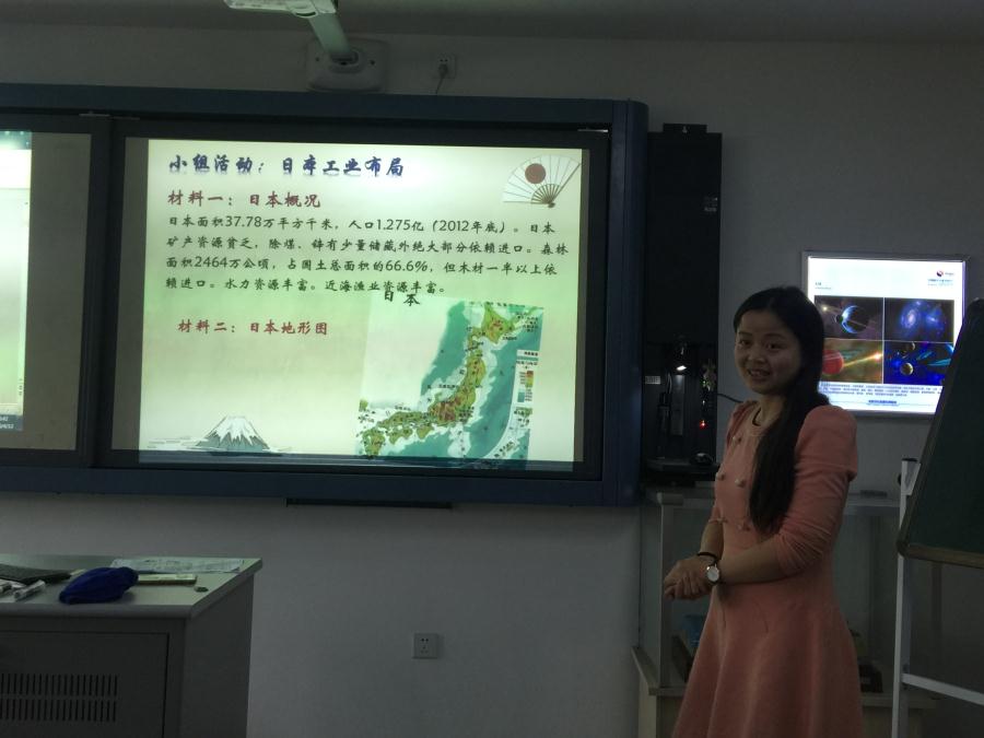 刘英老师随后带来“运用地图和其他资料,联系某国家自然条件特点,简要分析该国因地制宜发展经济的实例——以日本自然条件和经济为例”,一句日语开场白吸引了在场老师目光,以日本朋友惠子的来信作为新课导入,引导同学们帮助惠子同学进行工业选址,从而得出日本工业的分布特点。本节课设计新颖,结构完整。