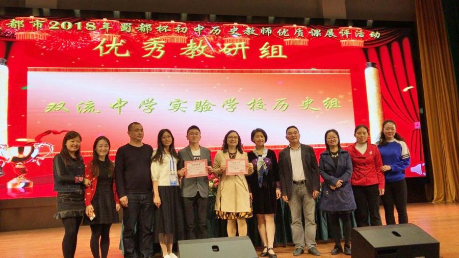 “蜀都杯”是成都历史教研的传统赛事,是成都市历史教师展示教学水平的最高平台,自举办以来培养出大量的名师,涌现出许多优秀的课例,是许多历史教师梦寐以求的舞台。为取得本次活动的承办权,历史组在前期做了大量的铺垫工作。主动与区、市教研员沟通,表达对承办“蜀都杯”强烈愿望;利用教研员开会间隙,带领其参观学校,展示我校良好的校园环境和基础设施,并大力介绍我校课题研究的成果。由于我校硬件“硬”,软件“强”,市教研员赖蓉辉老师欣然同意将2018年“蜀都杯”放在我校举行,这是双流区近20年来首次迎来“蜀都杯”。
