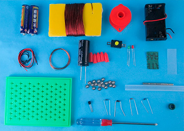 本届科技节的电磁炮采用的元件有发射开关、充电开关、三极管、电阻、电感线圈、二极管、电容、稳压管、可控硅、接线端面子等,如下图。