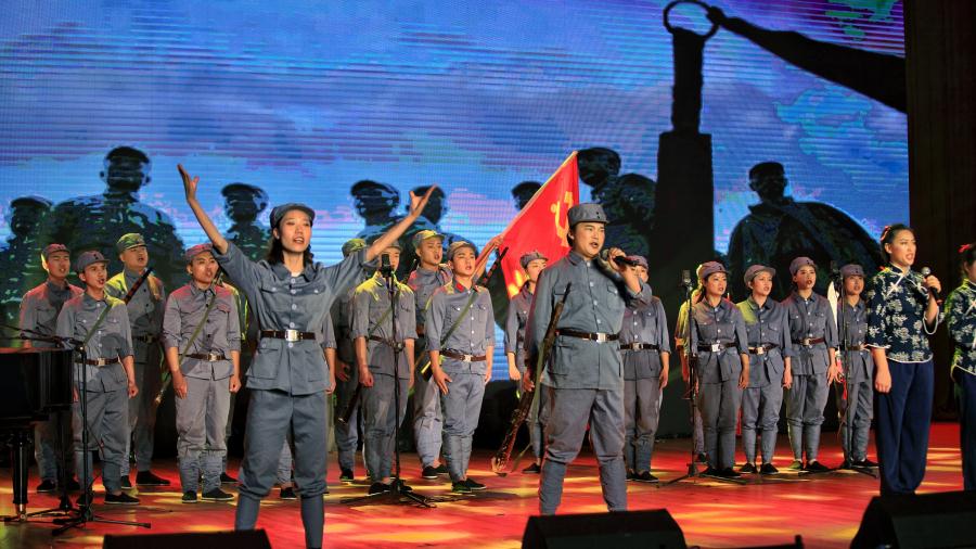 此次歌唱比赛采用淘汰制,要经过海选、进阶、半决赛等三个阶段的层层选拔,最终决出十二支队伍参加总决赛。为取得优异成绩,我校教师充分发扬革命先烈艰苦抗战、不怕牺牲的革命精神,克服活动持续时间久、训练时间少、调课难等重重困难,在夏导的指挥下,团结一心、刻苦训练。由于我校曲目表演形式丰富,情节跌宕起伏,独唱、合唱、舞蹈等融为一体,浑然天成,具有极强的感染力,因此不单在5月23日的片区选拔赛中轻易胜出,更在6月19日的半决赛中震感全场,夺得第一名,并最终在6月30日,在棠中举行的总决赛中荣获特等奖,再一次向世人展现了我新双中教师的风采。下面,就让我们一起来回顾那些精彩的瞬间: