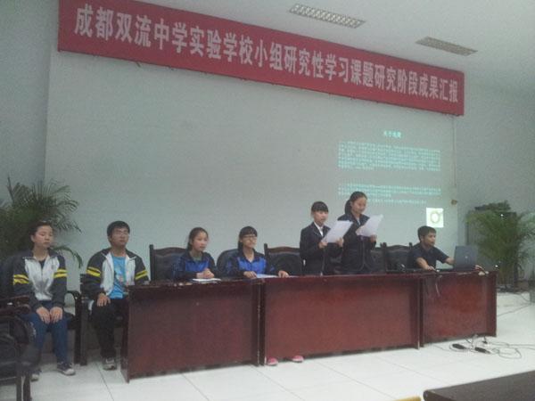 两周来,各课题小组的学生分别对《冰心诗歌》《传承历史文脉,守望精神家园—成都非物质文化遗产研究之走进川剧》《校园气象站》《迎外国友人,品双流风采—为双流国际化添“英”加“图”》和《双流县城垃圾处理现状及展望》等研究课题以图文并茂和作品展示的形式进行了形象生动的汇报展示。