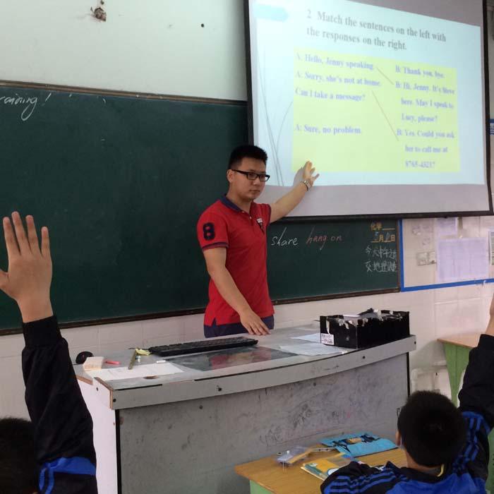 2014年5月9日上午,我校英语七年级组杨四维老师在七年级九班为大家带来了一堂精彩的单元复习课。本课主要对英语新目标教材七年级下册Unit 7 It’s raning! 展开系统复习梳理,以话题“talking on the phone”为统领,结合课本self-check,由词汇-短语-目标句型,一步步由浅入深地复习本课知识点。结构明朗,逻辑清晰,且辅以对话纠错、思维导图等教学设计,让学生对本单元的重点知识有较全面和清晰的认识。课堂气氛活跃,学生积极回答问题,时而妙语连连。本课获得了听课老师的肯定和较高评价,不失为一堂优质的单元小结课。