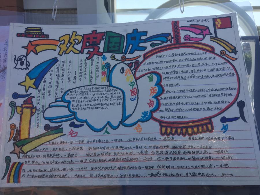 随着国庆佳节的到来,我校也即将将喜迎建校15周年校庆。以此为契机,我校语文组利用国庆假期在全校范围内开展“迎国庆 庆校庆”主题手抄报比赛。