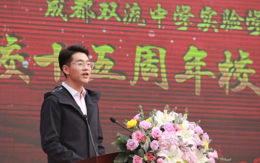 学生代表严可雯代表全体学生为校庆献贺词,2010届校友(诺贝尔医学提名奖获得者)包搏闻代表历届校友向辛勤培育他们的母校表达谢意和校庆的祝福,教师代表张艳代表在典礼上发表感言和祝福。