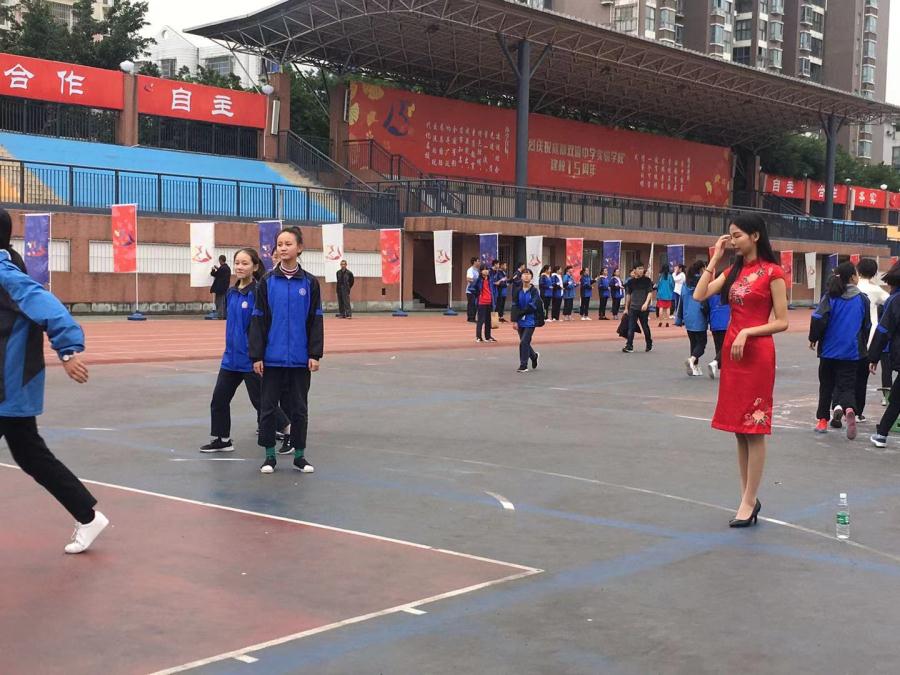 通过自愿申请,班主任推荐,学校德育处在八年级同学中组建了此次学生志愿者团队。为了提高他们的服务能力,德育处利用课余时间对他们进行了工作培训,对每一位志愿者工作地点和内容都做了细致的安排和清晰的说明,并请成都电子信息学校礼仪专业学生对他们进行了接待礼仪培训,让他们以更规范的礼仪言行迎接八方来客。为确保此次校庆服务工作不出任何差错,全体校庆学生志愿者放弃了周五下午的休息时间,在运动场上不断地演练各个服务环节。尽管天色渐晚,他们毫无怨言,认真演练,争取把每个动作都做得尽善尽美。在庆典当天,他们完美地完成了他们参与的各项活动,给参加庆典的来宾和全校师生留下了深刻的印象,得到了学校领导的高度评价。