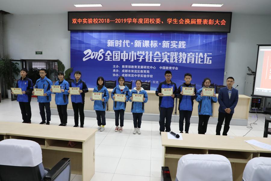 大会首先通过一段简小的视频共同回顾了过去一年中团校委、学生会、国旗班同学的工作,同学们出色地完成了学校安排的各项工作。在工作,涌现出了很多认真负责、工作出色、表现优秀的学生干部。为表彰优秀,树立先进典型,德育处、团校委和学生会评选出了2017—2018学年度优秀学生干部。德育处王俊老师宣读了优秀干部名单,并为优秀干部代表颁发了奖状。