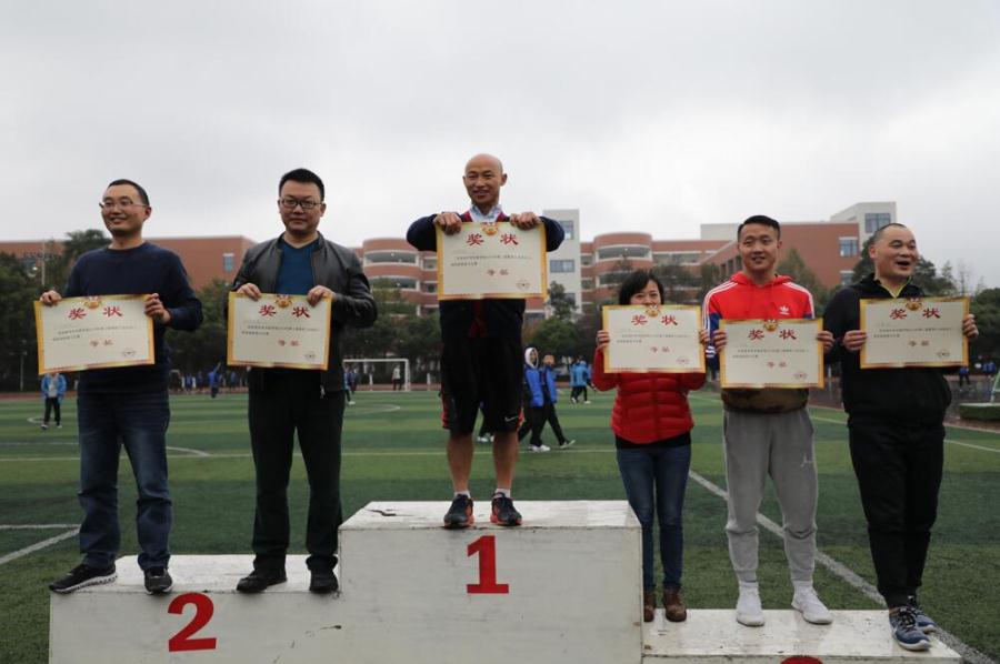 教职工迎面接力比赛:九年组获得一等奖,七年级组、八年级组获得二等奖,后勤组、小学组、附幼组获得三等奖。